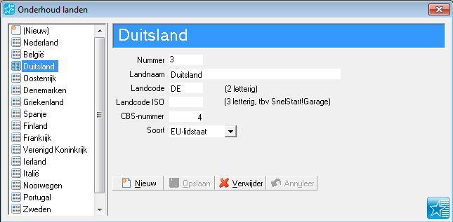 Landcode ISO heeft u alleen nodig bij SnelStart!Garage indien uw provider VWE ExtraNet is.